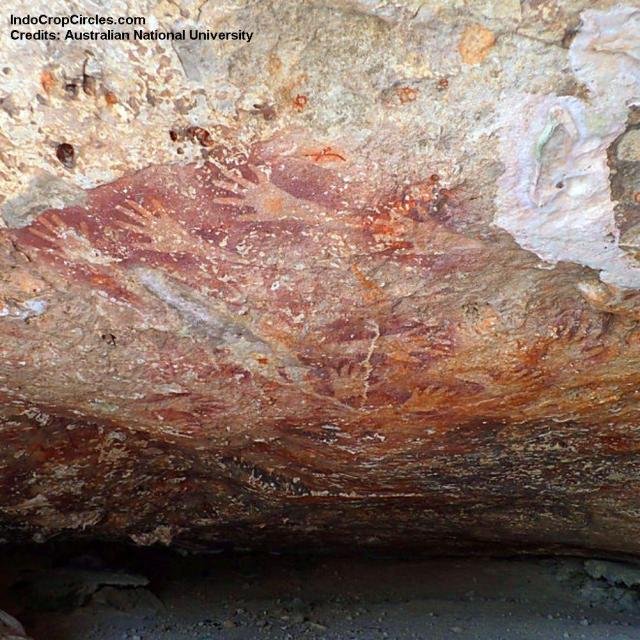 Diduga berumur jauh lebih tua. Beberapa situs seni batu di Pulau Kisar juga menampilkan bentuk ceplakan tangan-tangan manusia yang dibuat dengan pigmen merah. Para periset berpikir stensil ceplakan tangan ini mungkin jauh lebih tua daripada lukisan-lukisan figur. pada bebatuan [Credit: ANU]