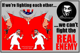 Umat beragama yang rukun di kotak-kotak untuk kemudian dijadikan konflik lalu dimanfaatkan karena menguntungkan negara barat yang mana kebanyakan dari politikus dan para elitnya adalah atheis.