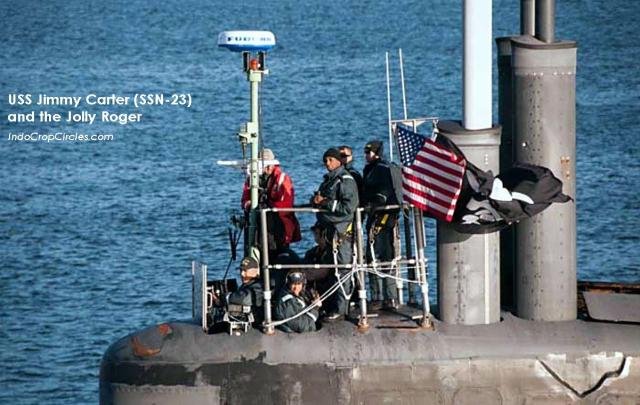 Selain itu kapal selam USS Jimmy Carter juga mengibarkan bendera “Bajak Laut” atau disebut sebagai bendera “Jolly Roger” yang berwarna hitam dengan gambar tengkorak dan dua buah tulang yang menyilang, menandakan sebuah kemenangan atau kesukesan dalam suatu misi atau operasi rahasia yang besar.