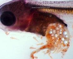 Larva ikan memakan mikro plastik “microbeads” atau manik-manik plastik mikro yaitu plastik mikro berbentuk bulat-bulat kecil di dalam pencernaannya, yang diproduksi dari partikel plastik padat dari pabrik.